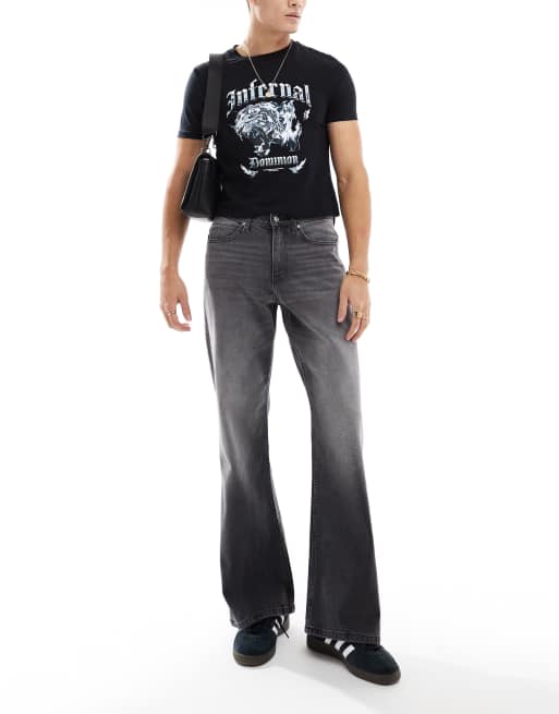 ASOS DESIGN – Czarne szerokie dzwony jeansowe z efektem sprania