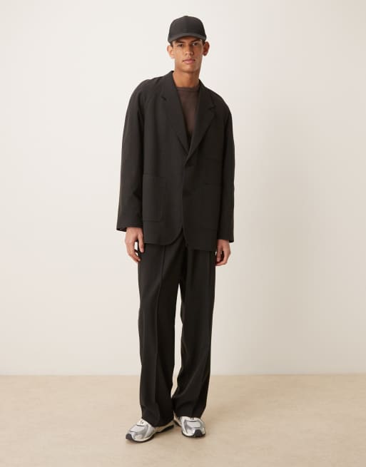 ASOS DESIGN – Czarne, szerokie spodnie garniturowe z gumką w talii, w drobną kratkę