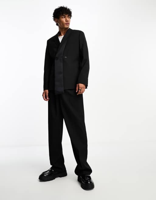 ASOS DESIGN – Czarne szerokie spodnie garniturowe z zakładkami