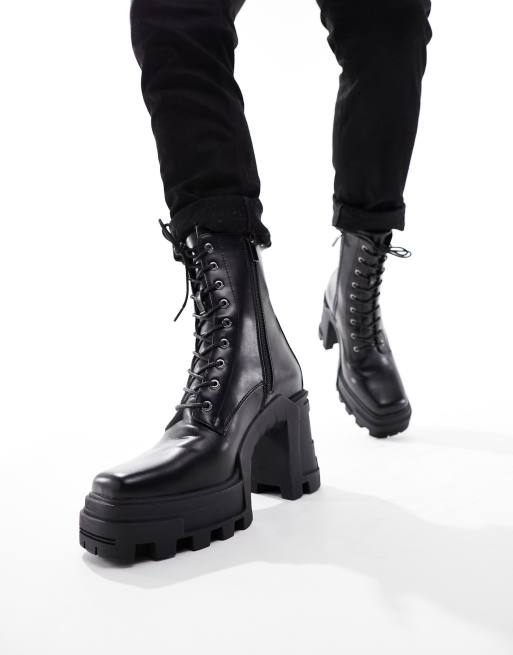 ASOS DESIGN – Czarne sznurowane botki na obcasie i platformie z imitacji skóry