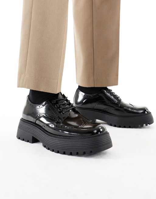 ASOS DESIGN – Czarne sznurowane buty na grubej podeszwie z detalami brogsów
