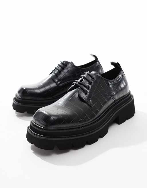 ASOS DESIGN – Czarne sznurowane buty na grubej podeszwie z motywem znoszenia