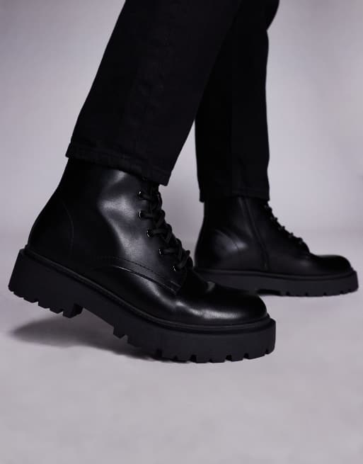 ASOS DESIGN – Czarne sznurowane buty trekkingowe na grubej podeszwie