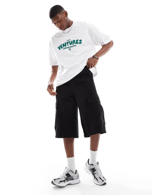 ASOS DESIGN – Czarne szorty bojówki o wydłużonym fasonie