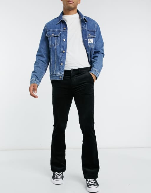 ASOS DESIGN – Czarne sztruksowe spodnie z rozszerzanymi nogawkami