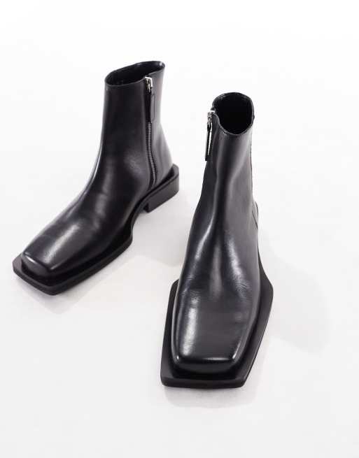 ASOS DESIGN – Czarne sztyblety z polerowanej skóry z kanciastą podeszwą