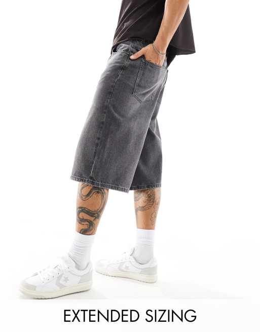 ASOS DESIGN – Czarne wydłużone jeansowe jortsy