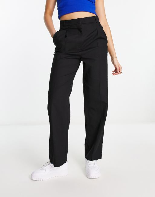 ASOS DESIGN – Czarne zwężane spodnie o kroju mom z domieszką lnu