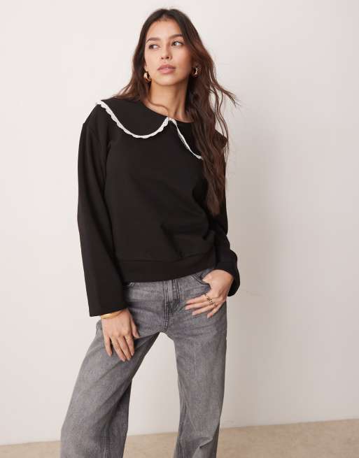 ASOS DESIGN – Czarno-biała bluza oversize z ozdobnym kołnierzykiem wykończonym koronką