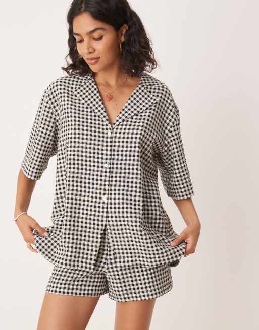 ASOS DESIGN – Czarno-biała koszula z kołnierzykiem kubańskim w kratkę vichy