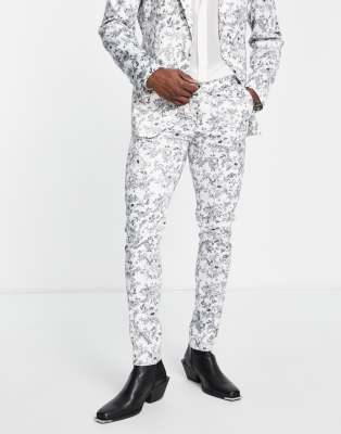 ASOS DESIGN – Czarno-białe obcisłe spodnie garniturowe w kwiaty