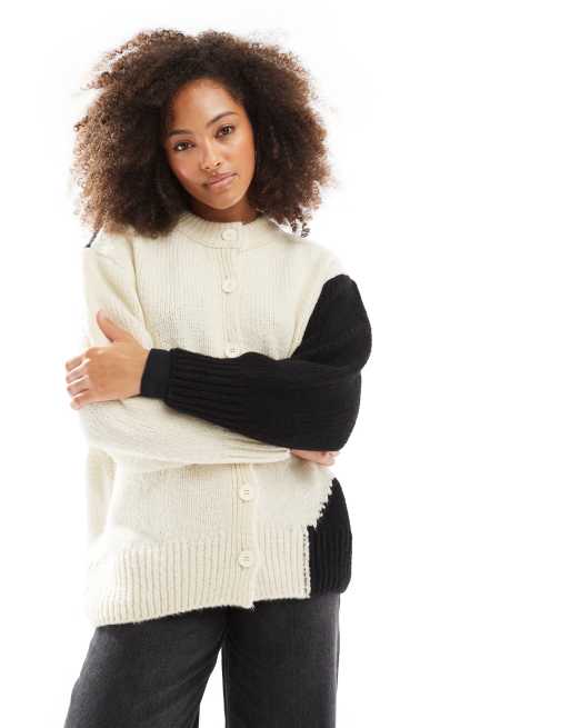 ASOS DESIGN – Czarno-biały dzianinowy kardigan z okrągłym dekoltem w abstrakcyjny wzór