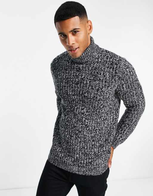 ASOS DESIGN – Czarno-biały gruby prążkowany sweter z golfem