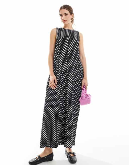 ASOS DESIGN – Czarno-biały kombinezon z okrągłym dekoltem i kulotami we wzór w groszki
