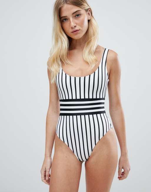 ASOS DESIGN – Czarno-biały strój kąpielowy w paski