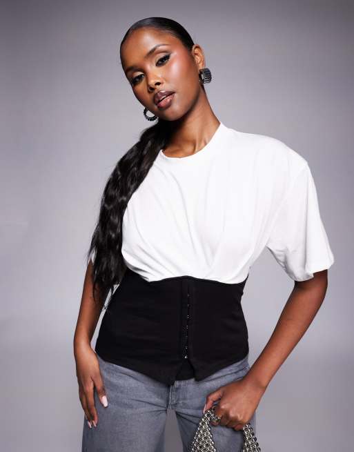 ASOS DESIGN – Czarno-biały T-shirt z gorsetem