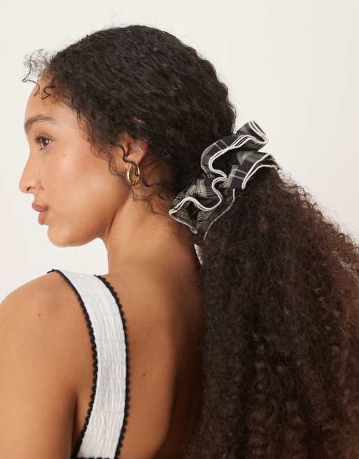 ASOS DESIGN – Czarno-szara gumka do włosów w kratę
