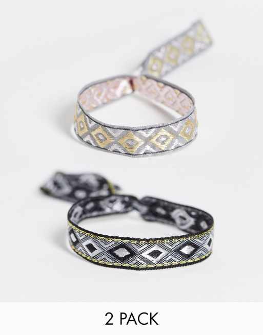 ASOS DESIGN – Czarno-szare bransoletki tekstylne ze wzorem azteckim