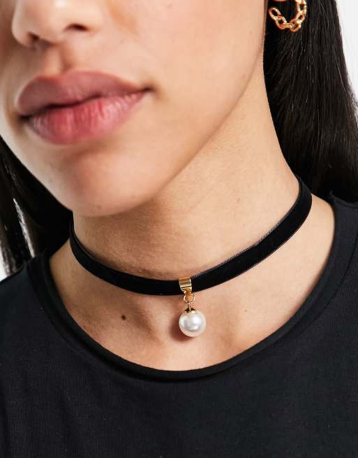 ASOS DESIGN – Czarny aksamitny naszyjnik choker z zawieszką ze sztuczną perłą