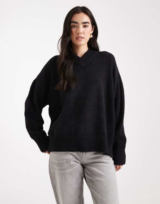 ASOS DESIGN – Czarny bardzo miękki sweter oversize z dekoltem w szpic