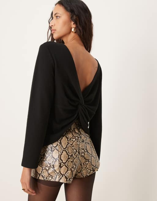 ASOS DESIGN – Czarny bardzo miękki top z długimi rękawami i skręconą wstawką na plecach