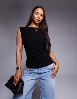 ASOS DESIGN – Czarny bawełniany top bez rękawów z marszczeniem