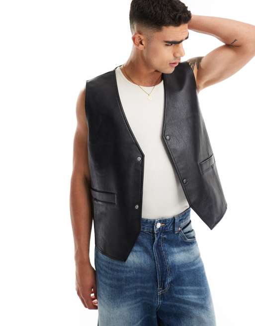 ASOS DESIGN – Czarny bezrękawnik z imitacji skóry