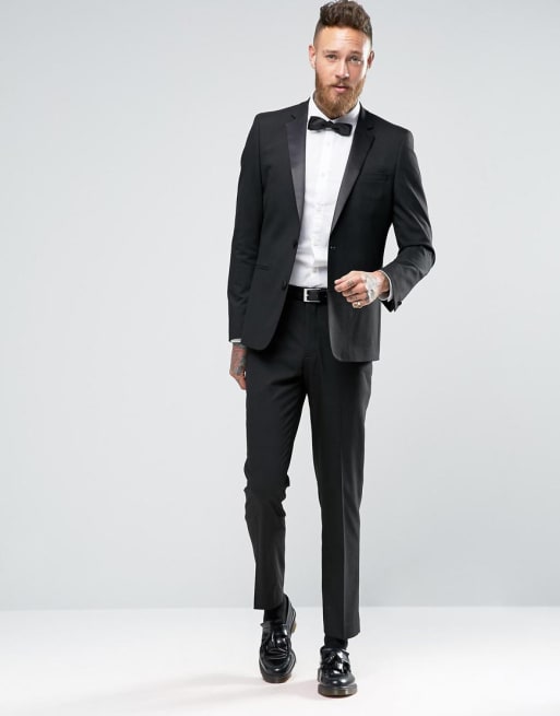 ASOS DESIGN – Czarny dopasowany smoking z satynowym wykończeniem