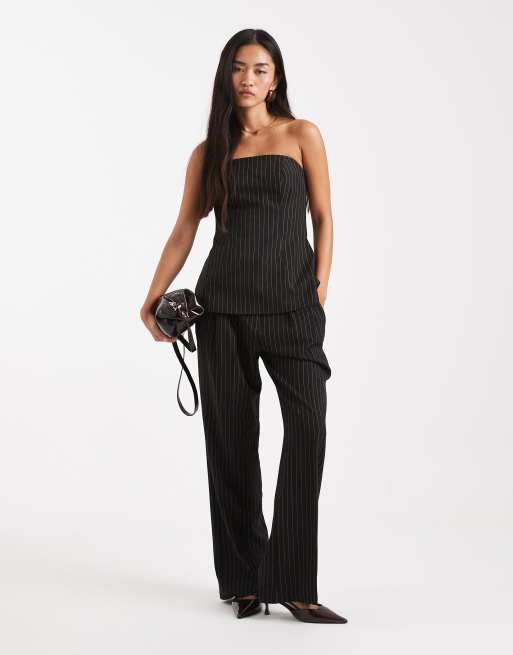ASOS DESIGN – Czarny dopasowany top w prążki z dekoltem bandeau, część zestawu