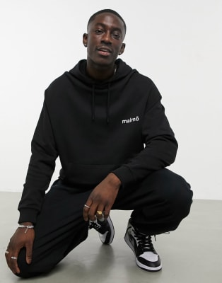 ASOS DESIGN – Czarny dres z małym nadrukiem nazwy miasta