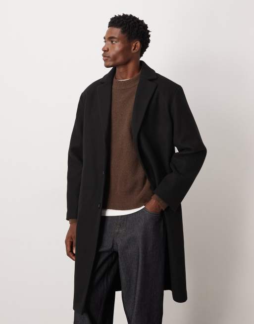 ASOS DESIGN – Czarny długi luźny płaszcz z imitacji wełny
