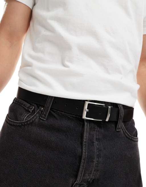 ASOS DESIGN – Czarny dwustronny pasek z imitacji skóry i imitacji zamszu
