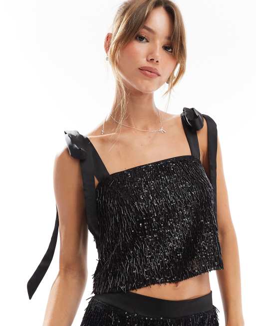 ASOS DESIGN – Czarny elegancki top premium z koralikami
