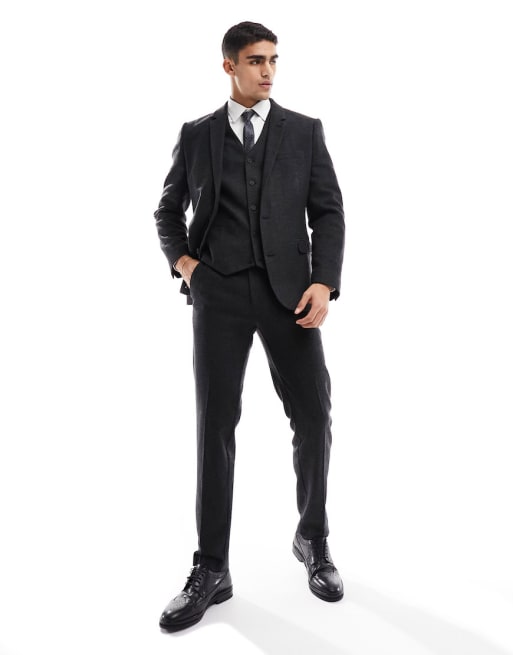 ASOS DESIGN – Czarny fakturowany garnitur o dopasowanym kroju z domieszką wełny