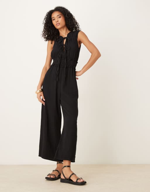 ASOS DESIGN – Czarny kombinezon zbierany na biuście z dwuwarstwowej tkaniny