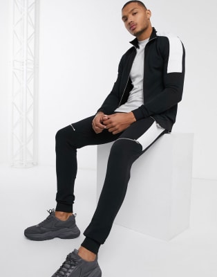 ASOS DESIGN – Czarny komplet z białymi lampasami