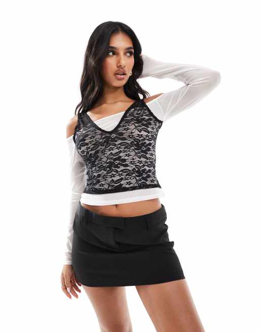 ASOS DESIGN – Czarny koronkowy top dwuwarstwowy z odsłoniętymi ramionami