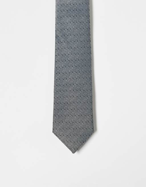 ASOS DESIGN – Czarny krawat we wzór greckiej fali