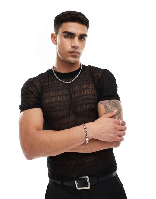 ASOS DESIGN – Czarny marszczony T-shirt o kroju podkreślającym sylwetkę