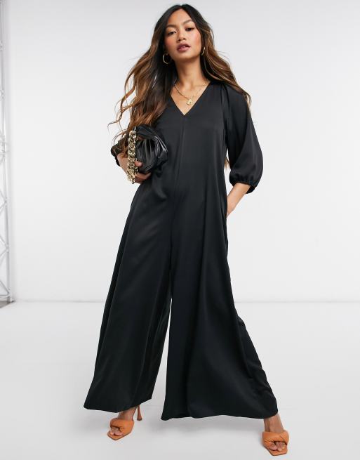 ASOS DESIGN – Czarny minimalistyczny kombinezon z bufkami i dekoltem w kształcie litery V