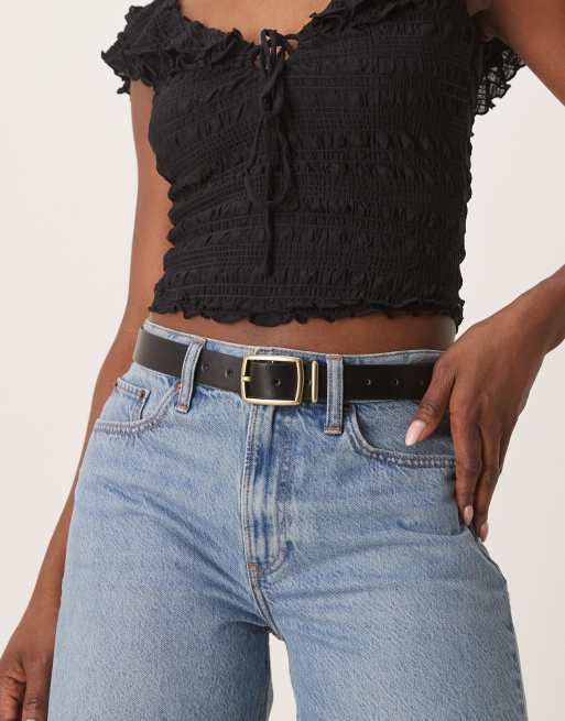 ASOS DESIGN – Czarny pasek do jeansów na biodra i talię z kwadratową klamrą
