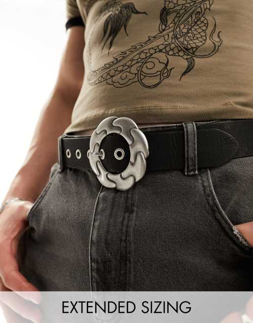 ASOS DESIGN – Czarny pasek z imitacji skóry z gotycką klamrą w stylu lat 90 i efektem znoszenia