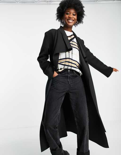 ASOS DESIGN – Czarny płaszcz z dużym falującym kołnierzem z materiału nurek