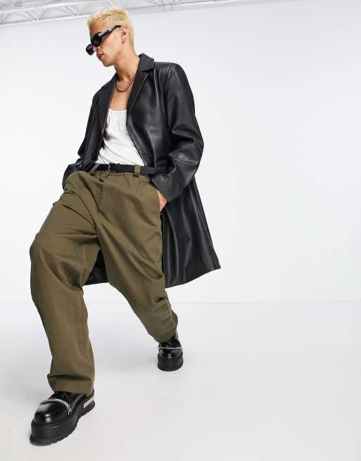 ASOS DESIGN – Czarny płaszcz z naturalnej skóry