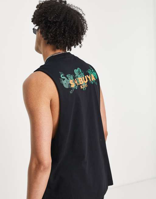 ASOS DESIGN – Czarny podkoszulek o luźnym kroju z nadrukiem miasta z przodu