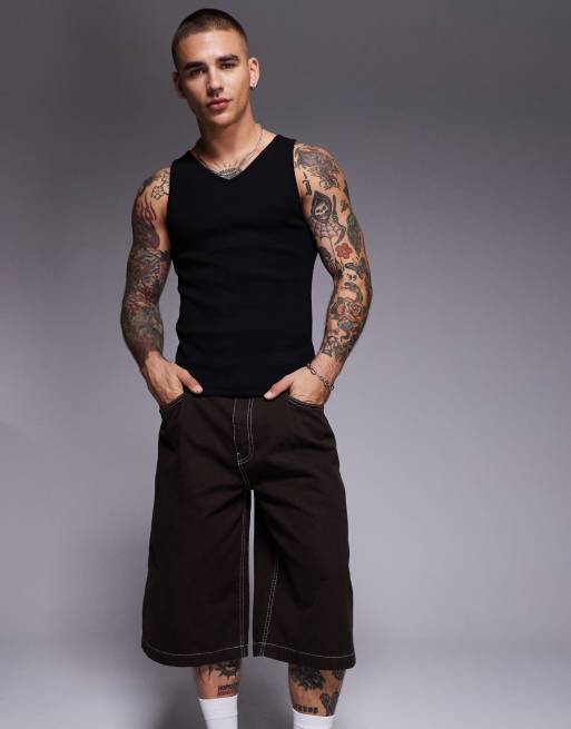 ASOS DESIGN – Czarny podkreślający sylwetkę podkoszulek z dekoltem w szpic