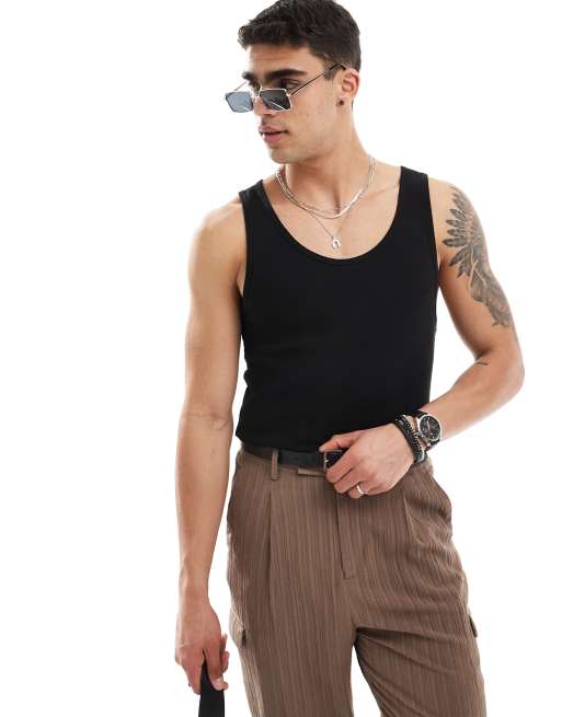 ASOS DESIGN – Czarny prążkowany podkoszulek o kroju podkreślającym sylwetkę