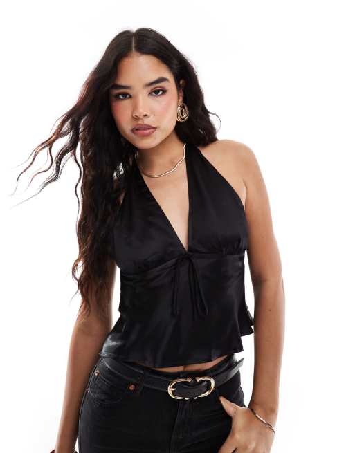ASOS DESIGN – Czarny satynowy top z dekoltem halter