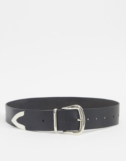 ASOS DESIGN – Czarny skórzany pasek do jeansów ze srebrną metalową końcówką