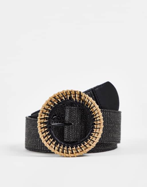 ASOS DESIGN – Czarny słomkowy pasek na biodra i talię z ratanową klamrą